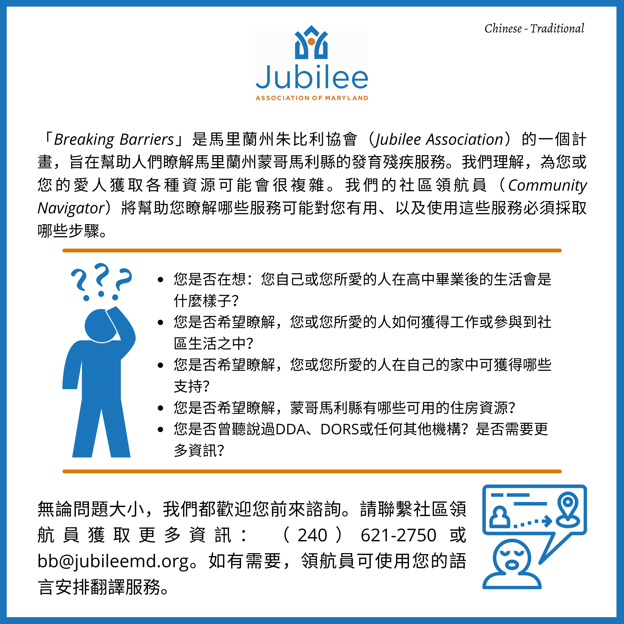 [featured_image] Download Download is available until [expire_date] Version Download 949 File Size 594.69 KB File Count 1 Create Date October 11, 2021 Last Updated October 11, 2021 Referral Flyer for People with I/DD - Chinese Traditional
